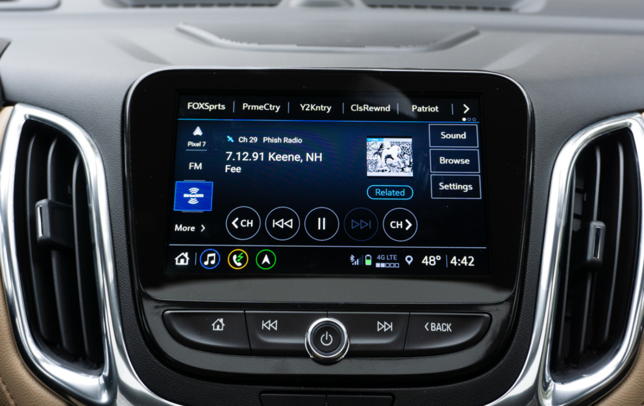 Equinox в базе имеет 7-дюймовый экран, в топовых версиях – 8-дюймовый. Главный плюс – беспроводная поддержка Apple CarPlay и Android Auto даже в стандартной комплектации LS, добавленная с 2022 года.