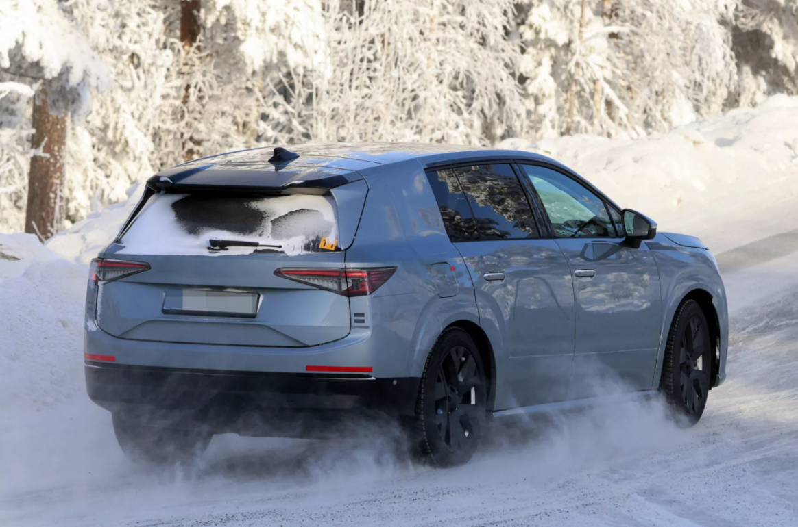Прототип засветился на зимних тестах, и даже под камуфляжем видно — машина получилась внушительной. Длинная покатая крыша, тонкие передние стойки, чистые боковины с утопленными ручками, массивные арки — силуэт скорее монументальный, чем семейный.