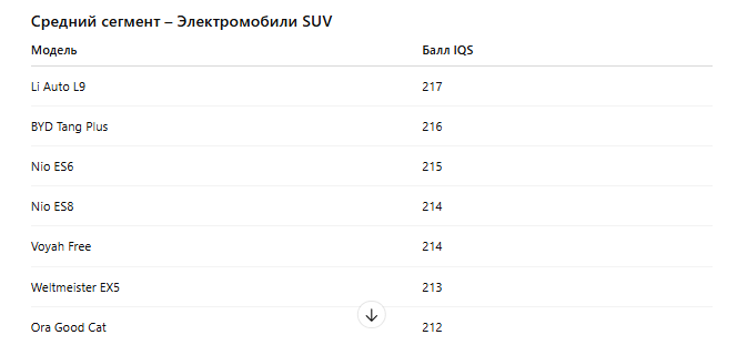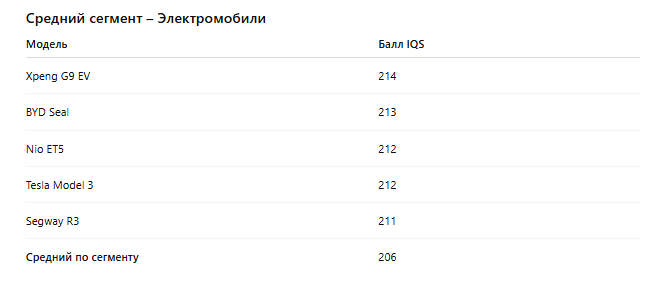 Оценки в среднем сегменте китайских EV (выборочно)